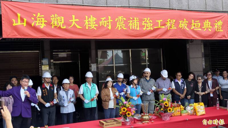 山海觀耐震補強工程去年五月由中央工程預算核定後,分別在七月、九月招標卻流標,十一月好不容易有廠商願意做,住戶認為應按照工程進度付款,但廠商把預付款、簽約金、材料費等都算進來,雙方未達成共識,因此再次流標,住戶們今天都相當開心能夠開始動工,期盼工程順利完工。