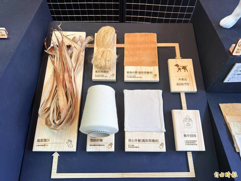 《Wooflai.旺來》|以屏東在地農業廢棄物鳳梨葉纖維轉化應用於工作犬背心設計。(記者陳彥廷攝)