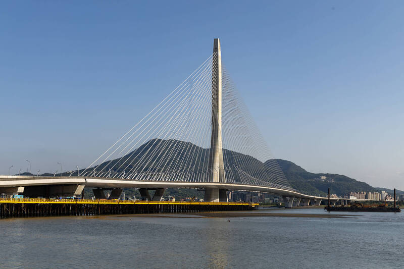 淡江大橋的不對稱單塔斜張橋為國際的知名地標,民眾可於5月3日登橋野餐,欣賞主塔與觀賞風景。(新北市觀光旅遊局提供)