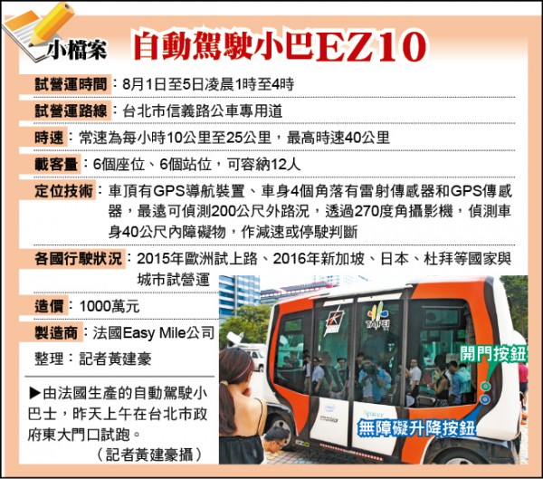 無人小巴 8月凌晨試行台北街頭
