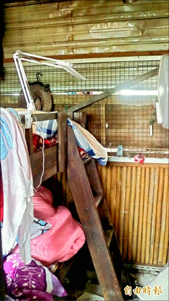林靜雲受託照顧已過世大姊、弟弟遺留下的4個小孩,擠在臨時搭建的工寮,牆壁都用木板臨時遮住,留下許多縫隙無法抵禦寒流。(記者王錦義攝)