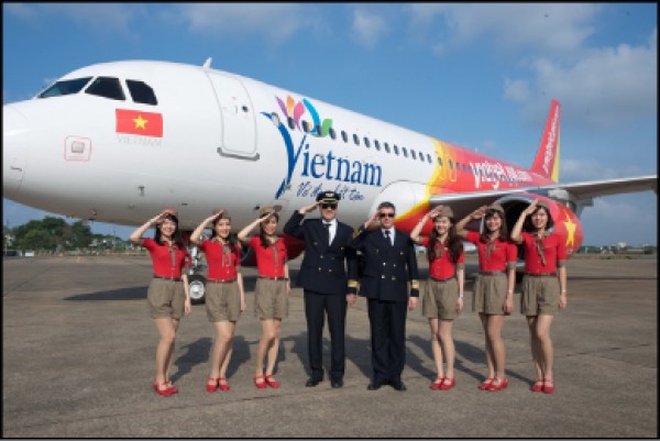 交通部觀光局再編列三千萬元提高境外包機旅客來台獎助金額。圖為越捷航空。(資料照)