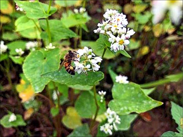蕎麥花可供觀賞又可為蜜源。(苗栗區農改場提供)