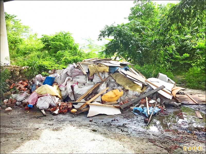 新竹市台68快速道路橋下有多處遭不肖人士偷倒廢棄物及廢土。(記者洪美秀攝)