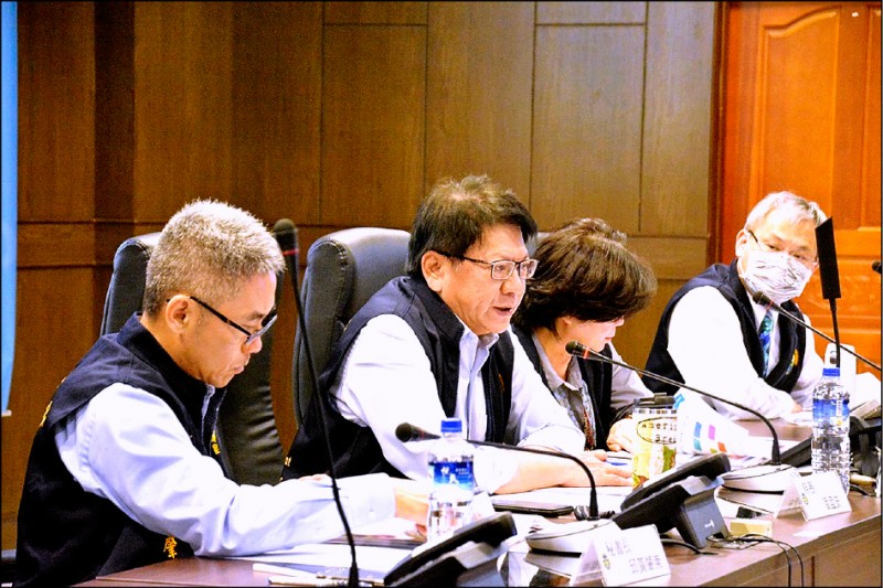 屏東縣長潘孟安(左二)主持「屏東縣疫情指揮中心會議」。(屏東縣政府提供)