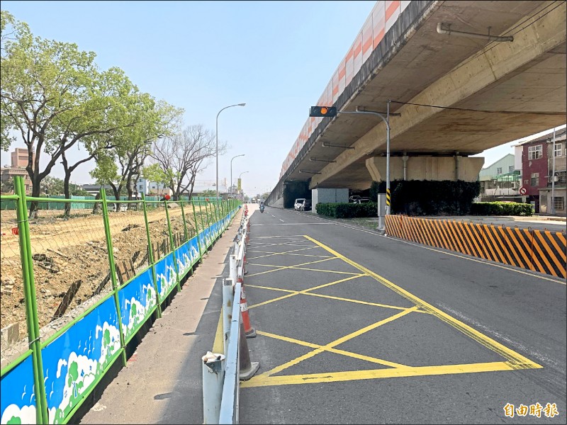 豐富專案施工,今天起至6月2日豐原大道一段北向橋下車道封閉。(記者黃鐘山攝)