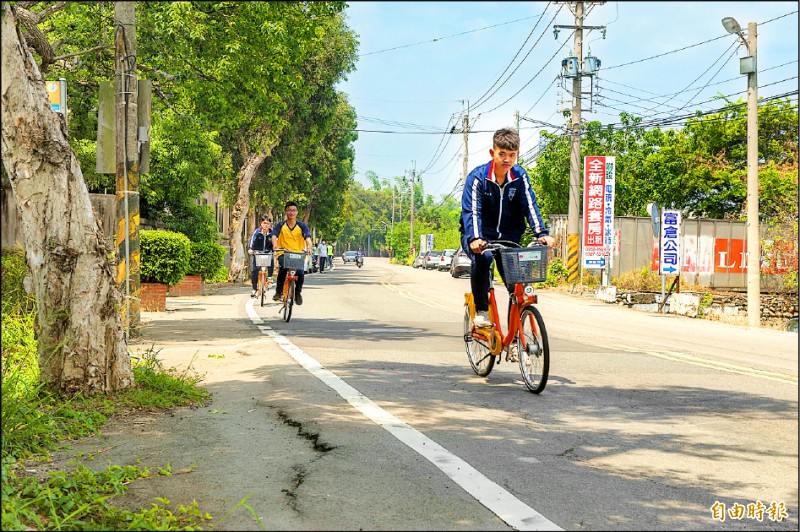 開元路路面起伏、龜裂,影響學生騎自行車的安全。 (記者張軒哲攝)