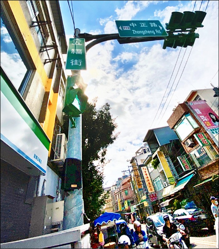 龍潭中正路與五福街口的小綠人,每日上午九點至下午六點卅分播放魯冰花、四季紅。(交通局提供)