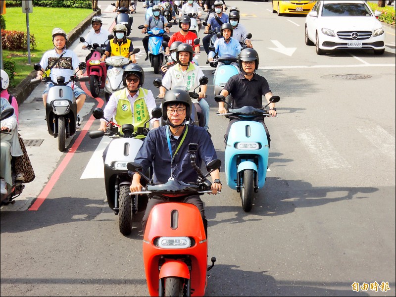 高雄市長陳其邁昨騎電動機車體驗路平成果。(記者王榮祥攝)