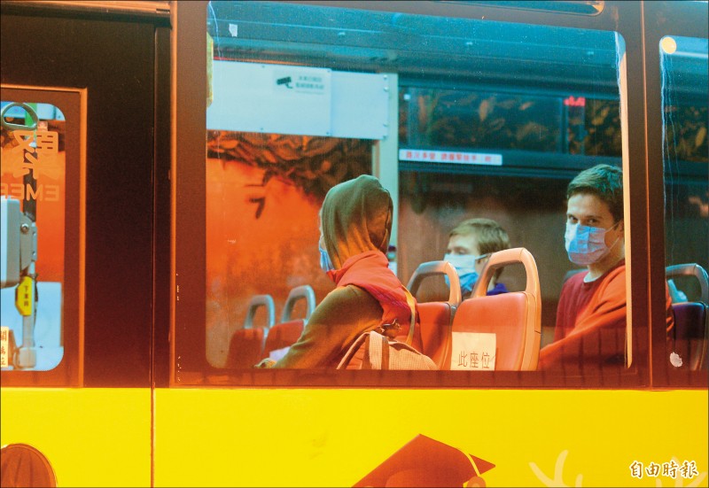 莫斯科芭蕾舞團成員昨晚離開飯店,搭專車到集中檢疫所。 (記者王藝菘攝)
