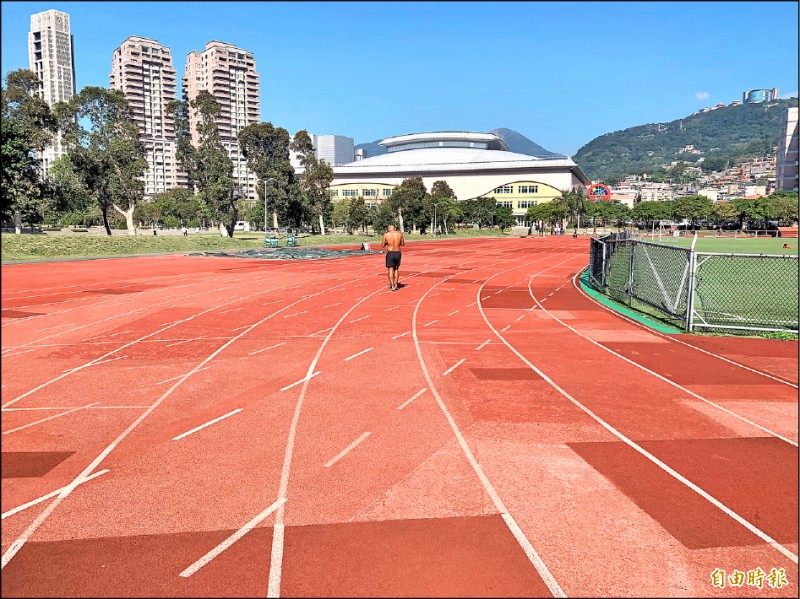 天母運動公園田徑場,以保護跑道為由,限制輪椅進入。(記者郭安家攝)