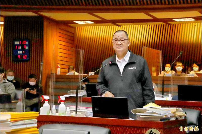 縣議員謝燦輝昨質詢時,爆出冬山素馨茶品牌商標,被中國註冊。(記者林敬倫攝)