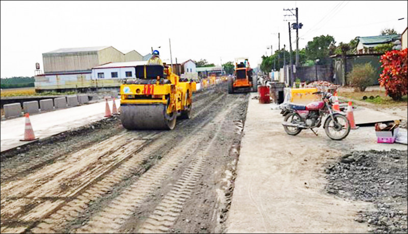 縣道一八七乙線東港至南州道路拓寬工程可於春節前完成開挖面回填。(屏縣府提供)