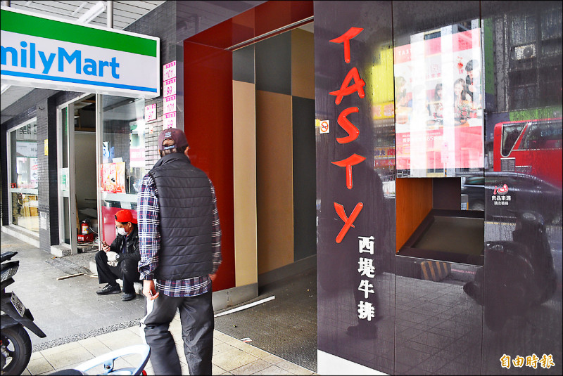 西堤中壢中山店群聚確診燒不停,用路人來去匆匆經過該門市。(記者李容萍攝)