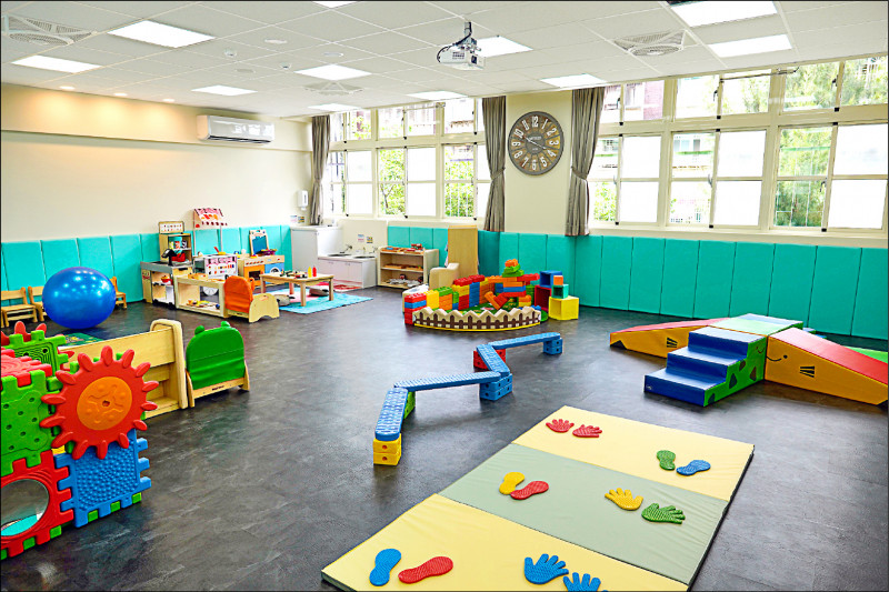 板橋國中公托有溫馨明亮的活動空間。(新北市社會局提供)