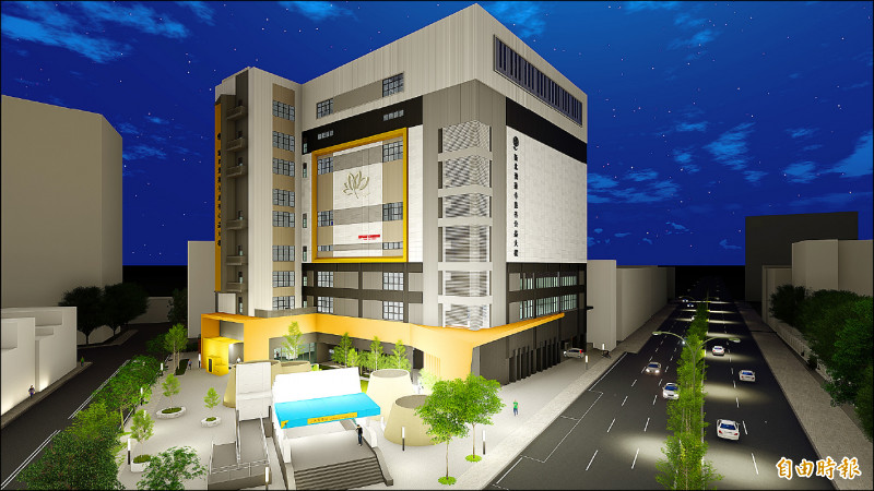 蘆洲區湧蓮寺慈善公益大樓預定二○二六年三月完工,圖為完工模擬圖。(記者翁聿煌攝)