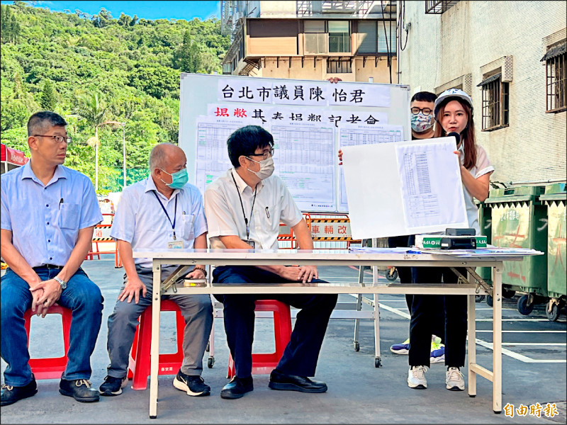 台北市議員陳怡君(右一)昨開記者會,質疑基泰建設25日將執行拆屋,拆除計畫書至今卻未通過。(記者楊心慧攝)