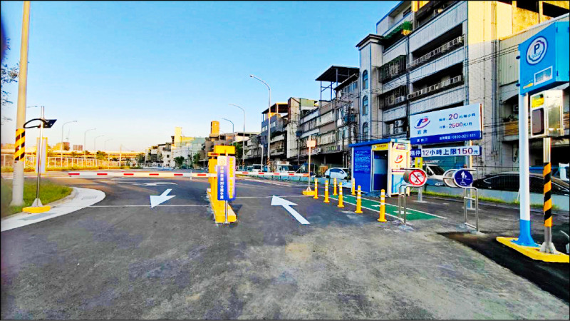 新莊塭仔圳重劃區廣停三平面停車場,十六日起試營運免費停車。(新北交通局提供)
