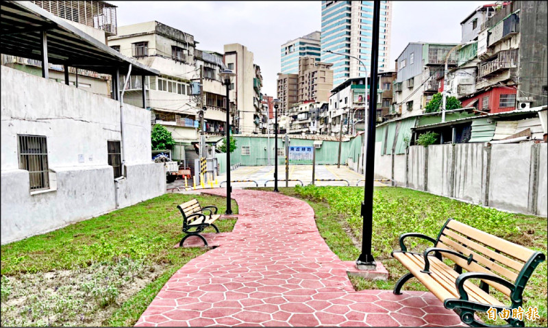 板橋民享街閒置公有地,變身綠地、停車場。(記者黃子暘攝)