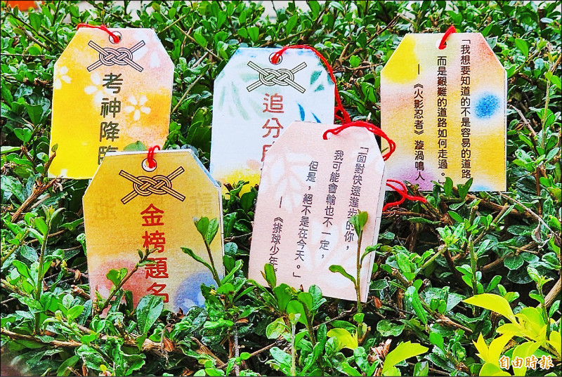 南市教育局推出「前路有光,夢想御守」,用動漫名言激勵考生。(記者洪瑞琴攝)