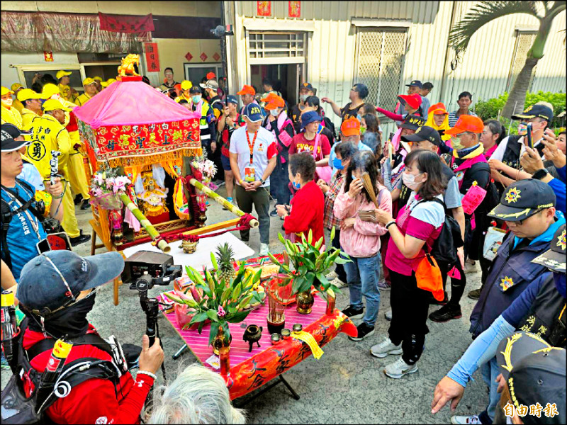 ↑白沙屯媽祖鑾轎行經台中海線,信眾爭相參拜。(記者張軒哲攝)