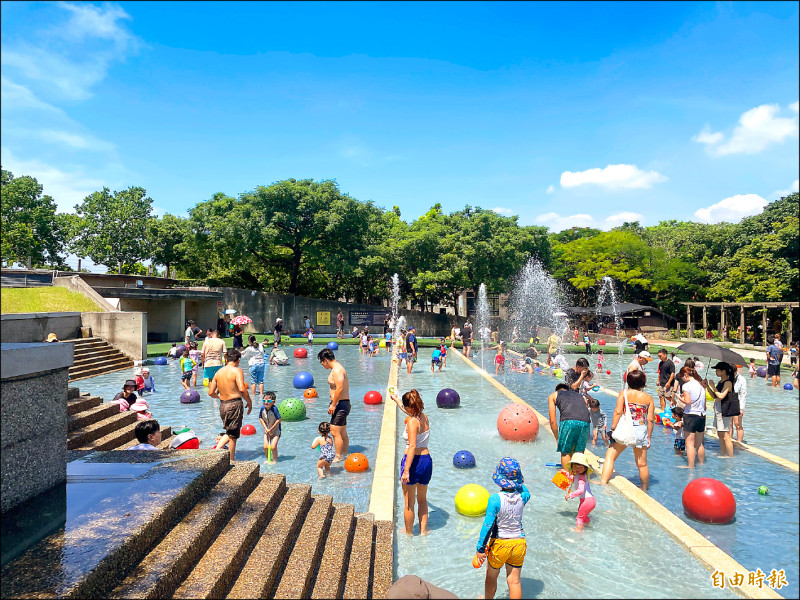 鶯歌陶博館戲水池六月廿五日起免費開放。圖為去年戲水情形。(檔案照,記者陳奕劭攝)