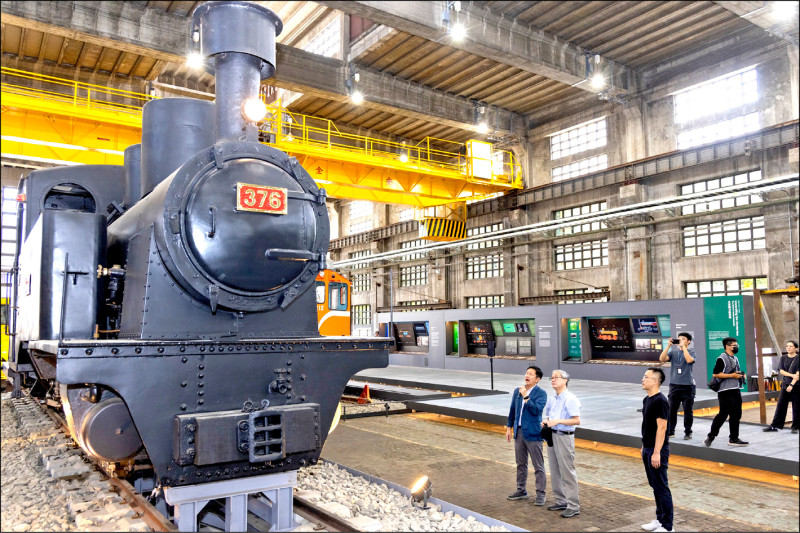 歷經9年整備的「國家鐵道博物館」,將於7月31日第一階段開館,率先開放柴電工場、總辦公室、技工養成所、材料試驗所、大禮堂及澡堂等6處古蹟建築,同時推出多項常設展與特展。文化部長李遠表示,歡迎國人一起重溫鐵道所乘載的珍貴文化記憶。上圖為鐵博入藏的第1輛蒸汽機車「糖鐵376號」,將於柴電工場常設性展出。(記者凌美雪)