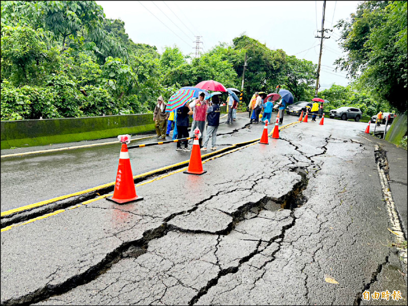 交工局長汪令堯表示,昨天下午已封閉道路搶修,道路中線打鋼板樁避免路面持續滑動,一週內恢復道路雙向通車,後續會向中央報請災後復建改善。