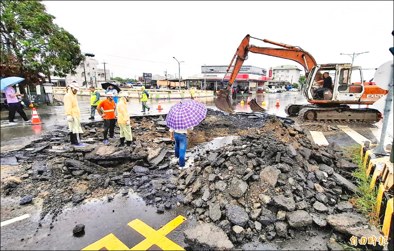 塌陷區域位於台一線南下二七五.四公里路段,縣長翁章梁、水上鄉長林緗亭昨到場勘災,相關單位了解後,該區域埋設公路局所屬箱涵,及自來水公司所屬管線,附近也有水上鄉公所維管的正義路地下道抽水站,經怪手開挖,發現為公路局所屬地下箱涵破裂造成道路塌陷。