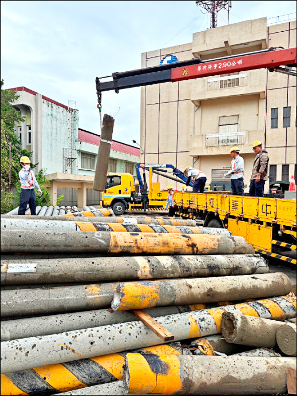 丹娜絲風災強風吹倒電桿,造成多處通訊中斷,中華電信緊急調派工程人員與設備全力投入重建作業。 (資料照,中華電信提供)
