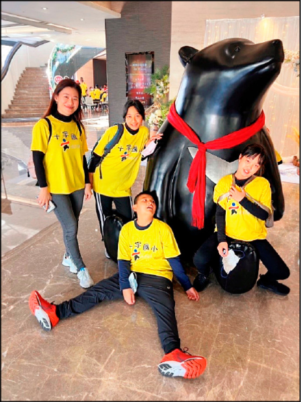 阿里山鄉十字國小代理教師洪久惠(左一)與學生相處融洽。(嘉義縣府提供)