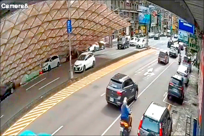 這起工安事故發生在昨下午,北區五權路、篤行路口的「中央市場改建工程」,原本用來防護的鷹架,因強風瞬間掀起,整排結構失衡倒塌,共壓到六輛行經或停放路旁汽機車,其中廿七歲男騎士當場被掃中倒地,手腳擦挫傷,所幸意識清楚,監視器畫面顯示,事故發生前交通順暢,未料短短不到幾秒,鷹架如骨牌般傾倒隨即覆蓋整個路面,現場一片混亂又驚悚。