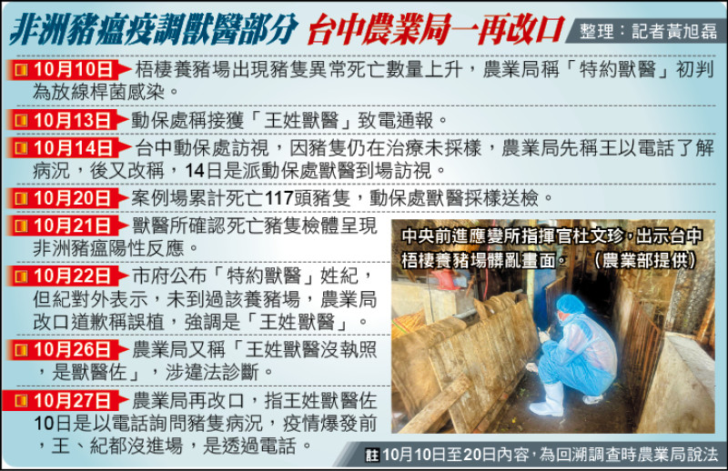 非洲豬瘟疫調獸醫部分 台中農業局一再改口