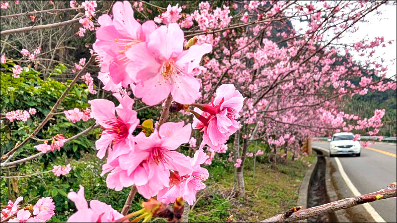 雲林古坑鄉草嶺、石壁櫻花現已逐漸綻放,每年花期最早的青山坪農場,園區內寒櫻已開五成,不過園方提醒,因唯一聯絡道的明隧道工程施工,禁止車輛通行,預計要到二月十七日(大年初一)、草嶺櫻花季開鑼日才會開放通車。草嶺村長陳兵通說,今年花況很不錯,春節連假至二月底是最佳賞花期。