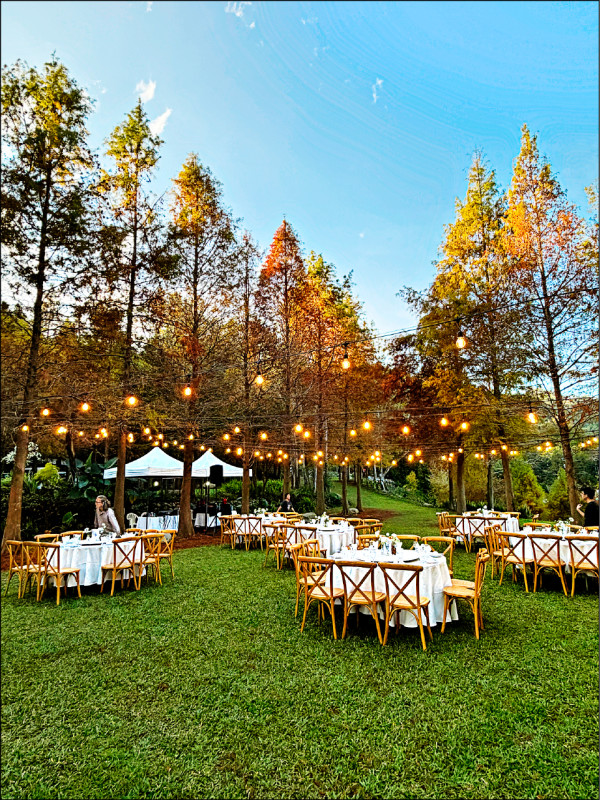 「松之戀」戶外婚禮布置,氣氛浪漫。(張智銘提供)