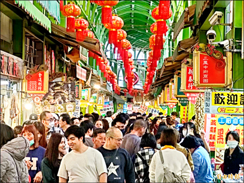 三鳳中街昨湧入大批採買年貨民眾。(記者王榮祥攝)
