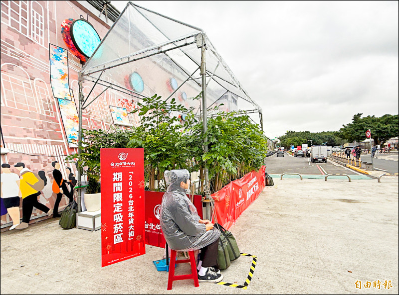 台北年貨大街擴大禁菸,市府在大稻埕碼頭五號水門設臨時吸菸區,使用者少。(記者孫唯容攝)