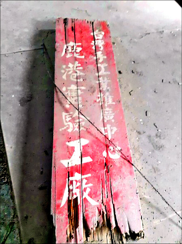 鹿港實驗工廠石製招牌仍在,將會進行修復。(台灣工藝研究發展中心提供)