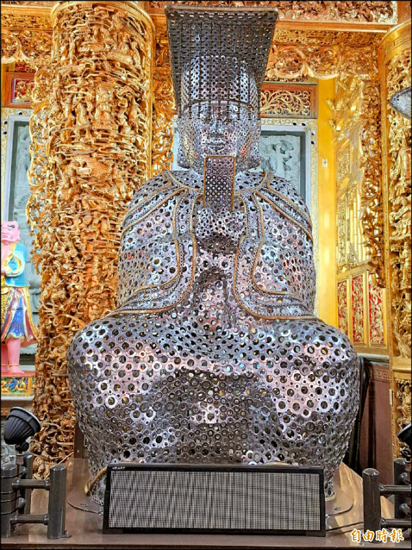 高雄岡山區以螺絲產業聞名全球,在地媽祖廟壽天宮以近2萬顆螺絲打造一尊「螺絲媽祖」。(記者蘇福男攝)