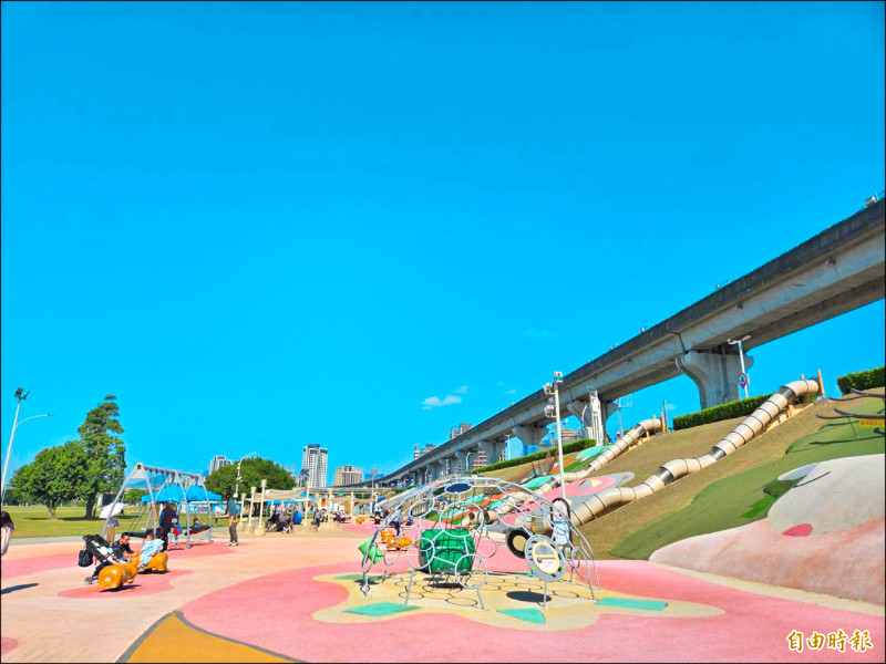 新北大都會公園擁有廣闊草地及豐富遊樂設施,成為拍攝場景首選。(記者賴筱桐攝)
