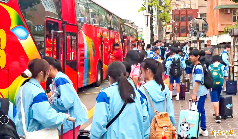 平鎮國中南下戶外教學,有70名師生腸胃不適,就醫後幸無大礙,昨晚師生返校回家。(記者李容萍攝)