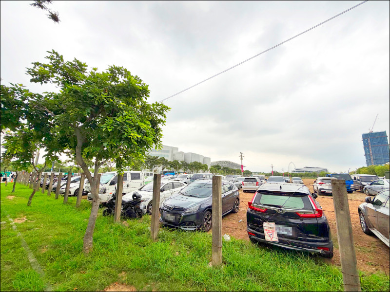台中水湳經貿園區「經貿八」招商零進度,慘淪停車場。 (陳淑華提供)