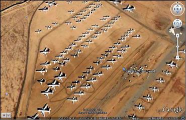 從Google earth可以清楚看到美國加州莫哈維Mojave飛機封存場的壯觀場面。(取自網路)