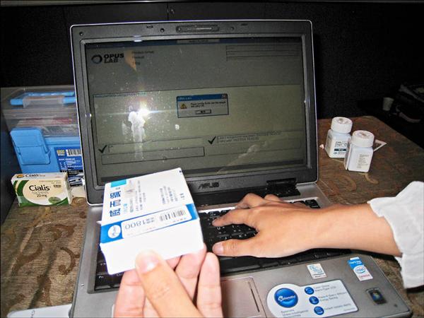 偽藥鑑定步驟1:將可疑藥品的編號輸入電腦。(記者魏怡嘉攝)