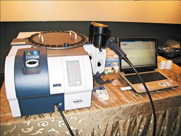 台灣打擊不法藥物行動聯盟引進近紅外線偵測儀,可在三到五分鐘內快速篩選偽藥,今年可加入各縣市衛生局稽查陣容。 <br>(記者魏怡嘉攝)