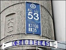 新款電線桿上方有註記地名,下方兩排號碼就是電力座標;最下方橫牌因移桿,座標10公尺進位的第8碼數字,從EE35,改為EE45。(記者吳仁捷攝)