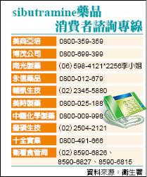 sibutramine藥品 消費者諮詢專線