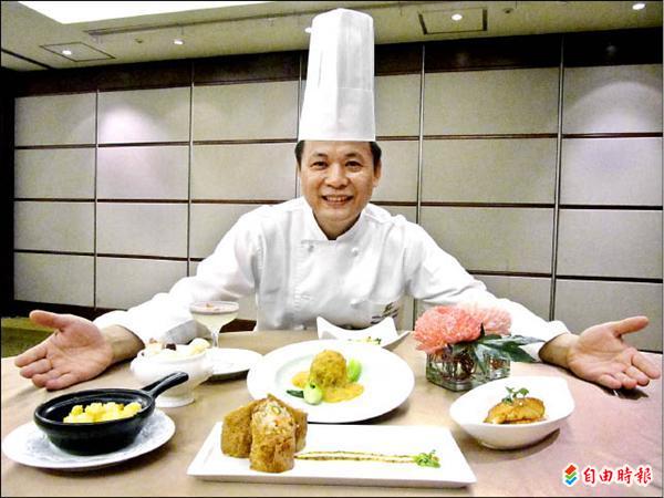 亞都麗緻天香樓行政主廚楊光宗於台灣美食展,特別推出的創意米料理套餐。(記者楊久瑩攝)