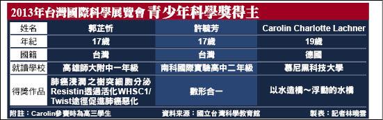 2013年台灣國際科學展覽會青少年科學獎得主
