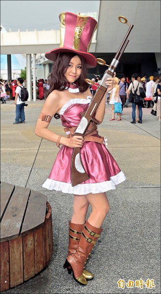 民眾打扮成遊戲「英雄聯盟」的角色凱特琳。(記者黃耀徵攝)